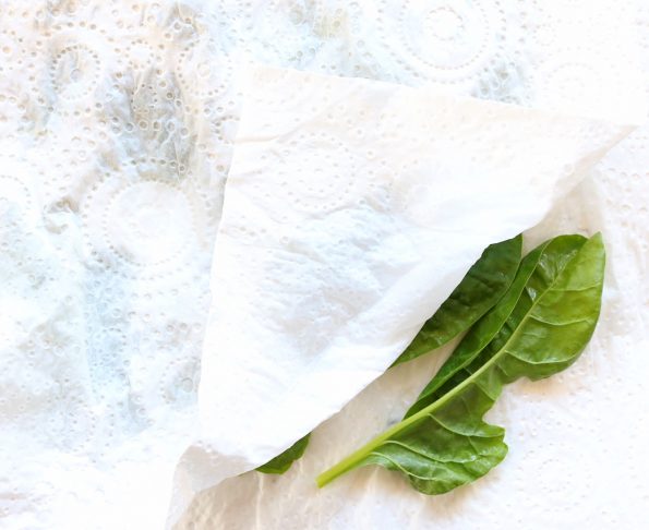 - Wash and drain the spinach. Lay it out on a paper towel or clean tea towel and pat it dry.