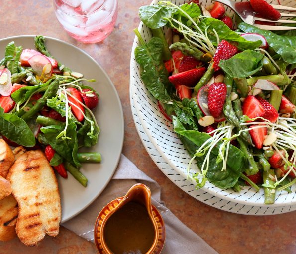 We all love strawberries and we all love asparagus, right? So why not put them together in a salad?! This summery salad is so fresh and so pretty you may even want to leave it undisturbed!