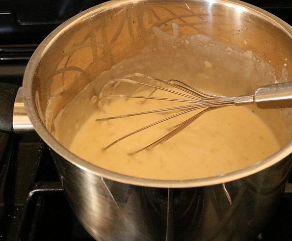 Turn the heat up to medium and add the remaining 1 ½ cups of milk…½ cup at a time…whisking the entire time and waiting for it to thicken slightly before each addition.