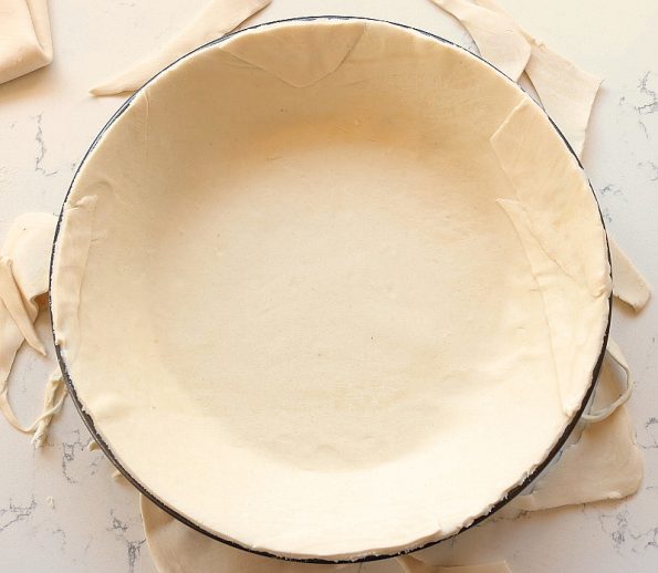 - If you are using a deep pie dish like mine, you’ll need to use every little scrap of pastry.